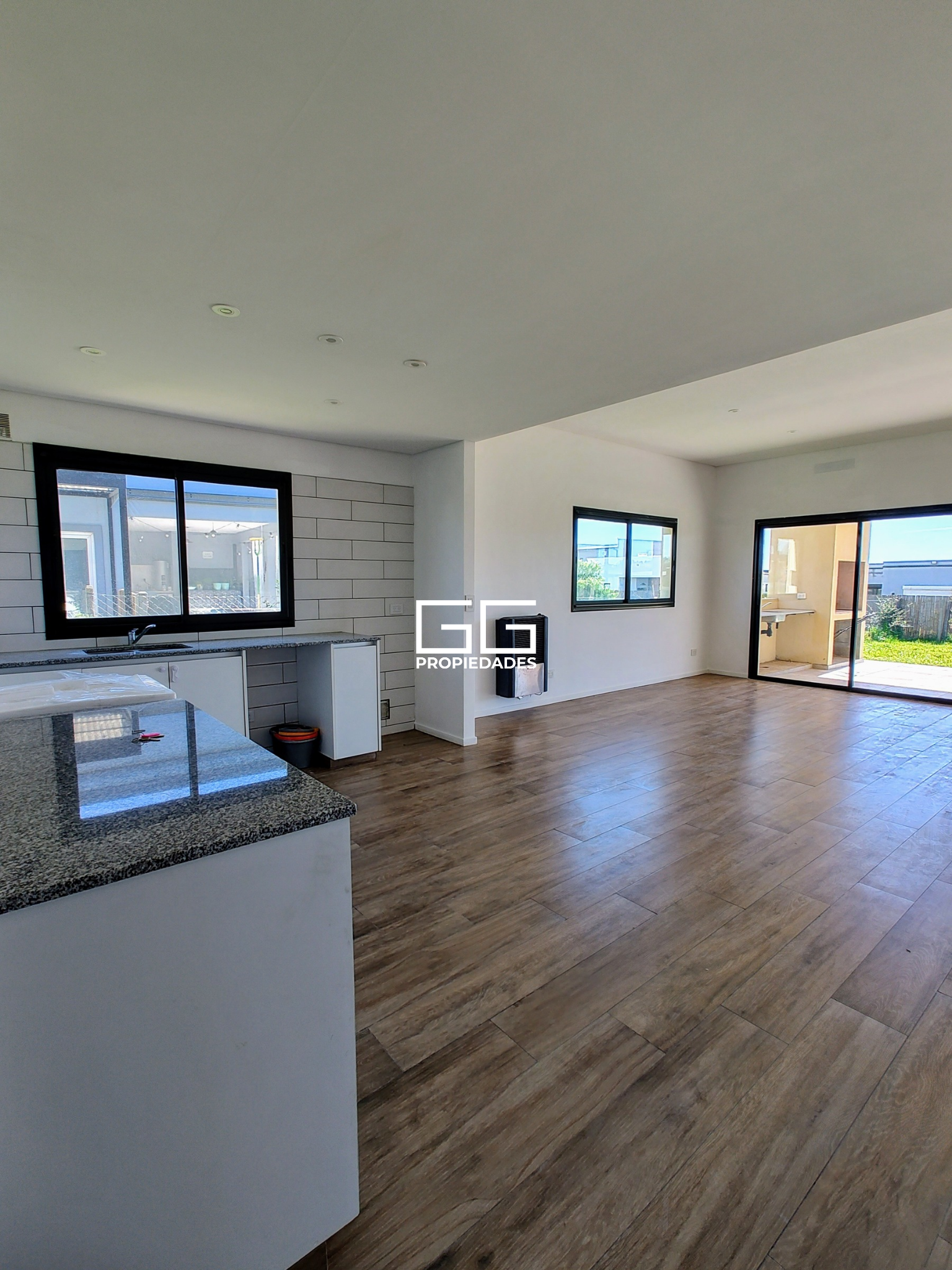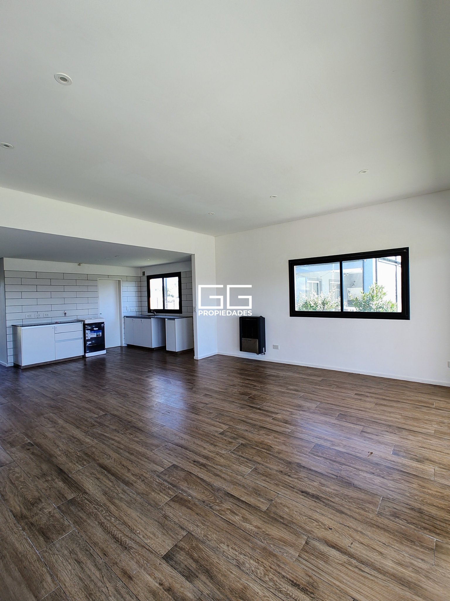 -Living comedor con cocina incorporada con amplios ventanales y salida directa a la galería