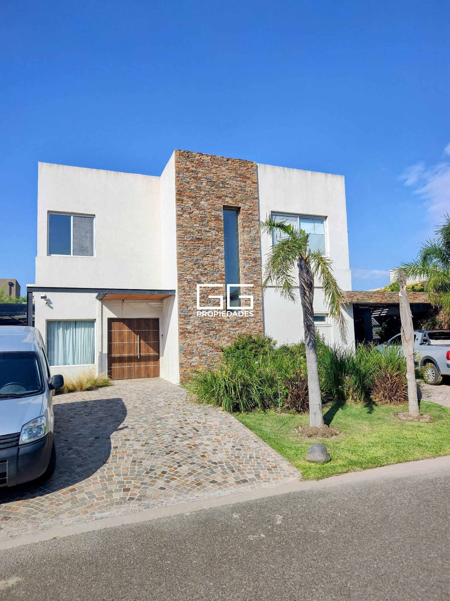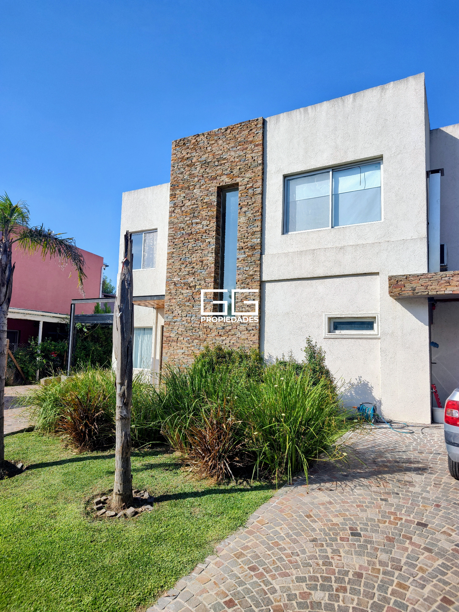 -Ingreso revestido en porfido con cochera semi cubierta en ambos laterales de la propiedad