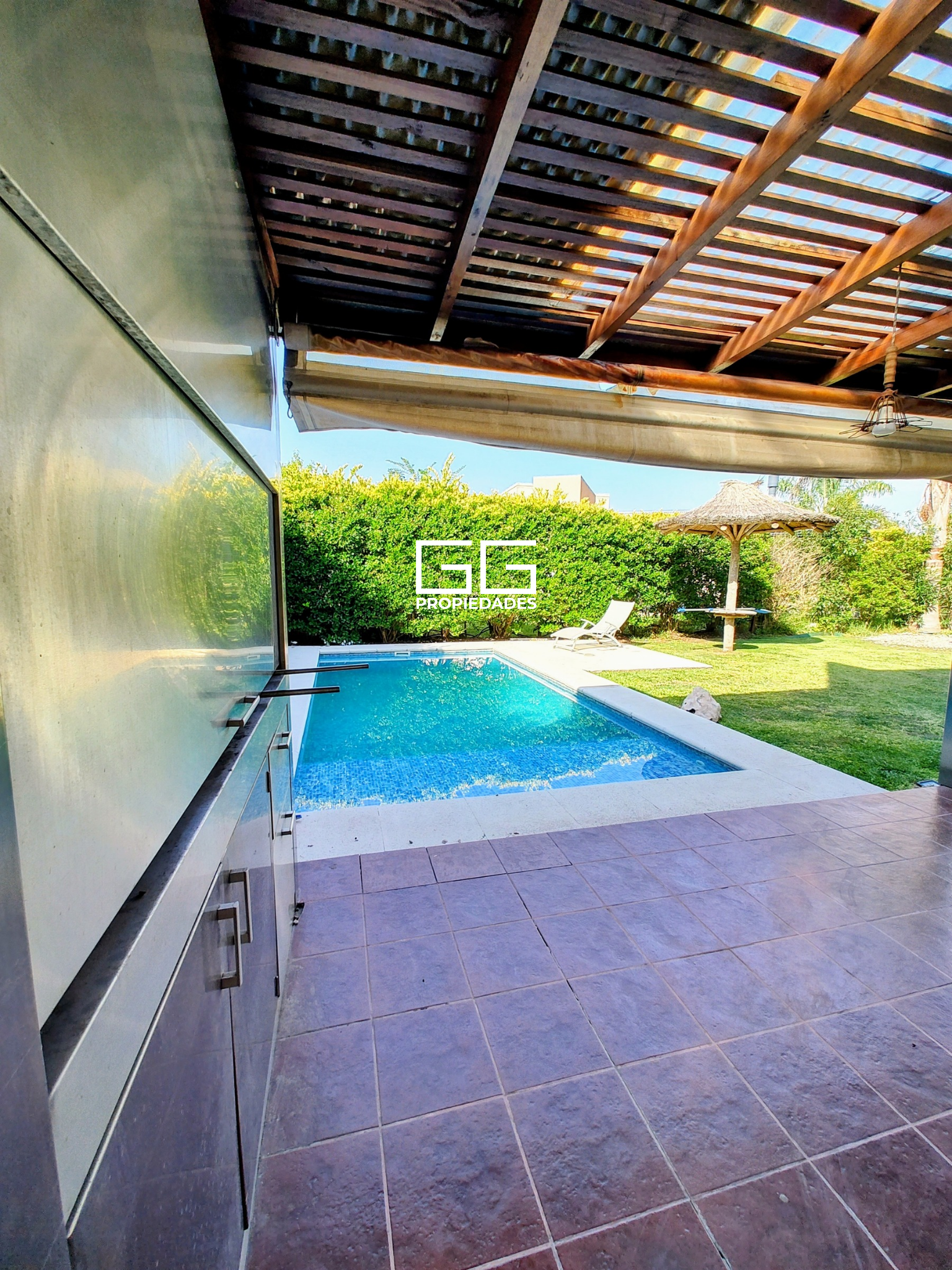 -Gran galería techada con parrilla de acero inoxidable