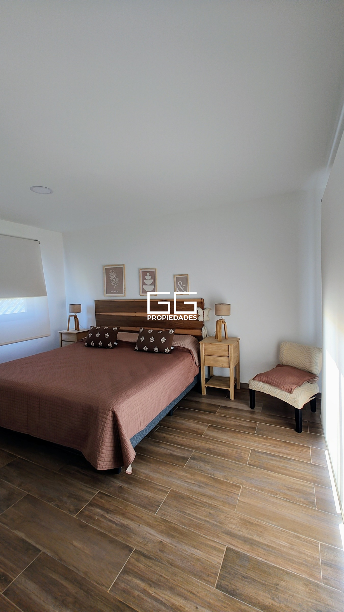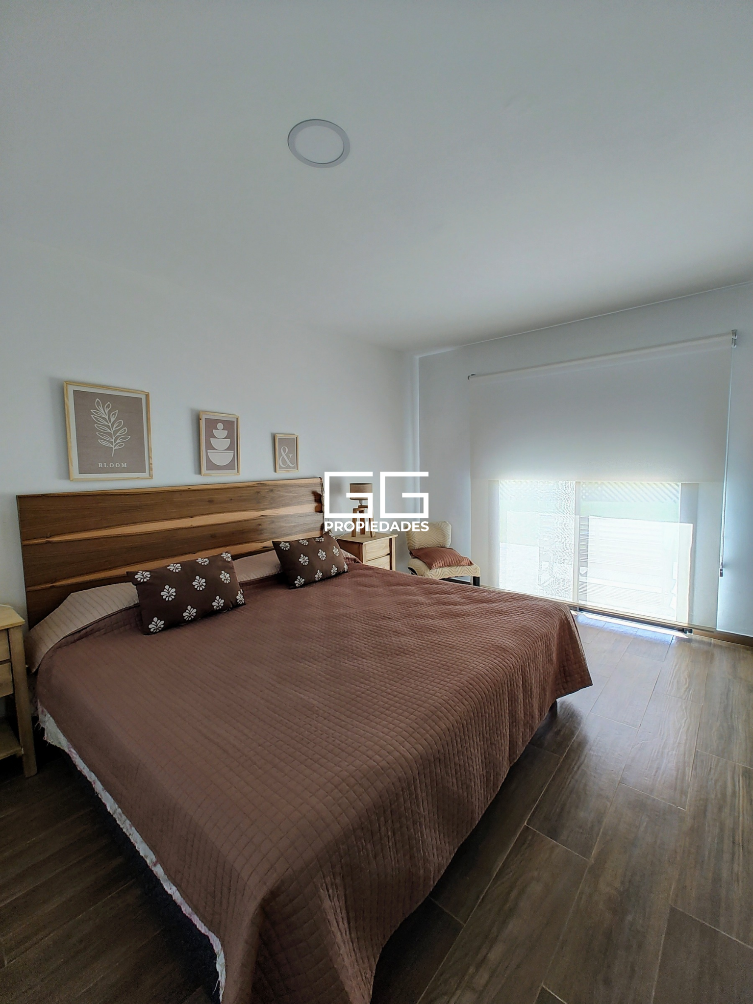 Dormitorio principal en suite con ante baño, baño completo con hidromasaje, vestidor y una amplia abertura que conecta con un living íntimo exterior.